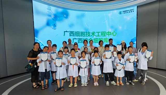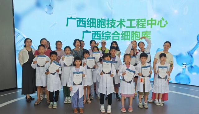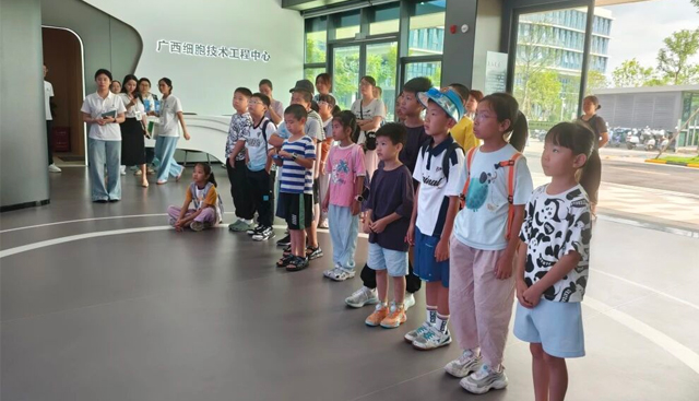 8月9日,广西细胞技术工程中心举办的“奇妙的细胞探秘之旅”研学活动正式启幕。当天,60组亲子家庭齐聚中心,在细胞中心老师们的全程引导下,通过“展厅沉浸式参观+实验室深度探秘+液氮冻鱼科学实验”三大核心环节,以“观察—提问—实践”的递进式学习模式,共同揭开生命科学的神秘面纱,开启了一场兼具知识性与趣味性的科学探索之旅。现在就带您全景还原这场“硬核科普与趣味体验并存”的奇妙旅程。