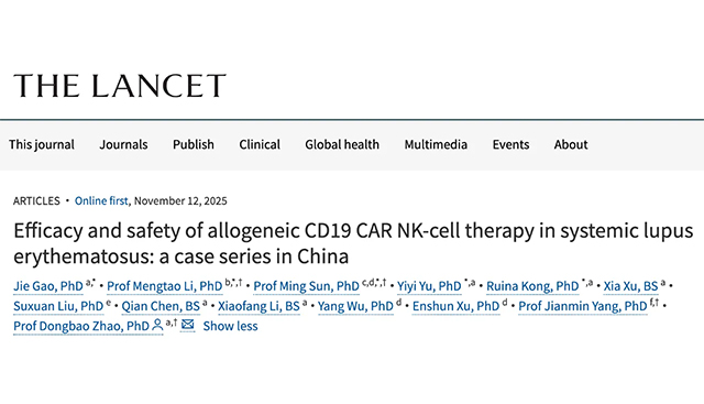 近日,由海军军医大学第一附属医院(上海长海医院)赵东宝教授牵头的中国多中心研究团队,在国际权威医学期刊《柳叶刀》(The Lancet)在线发表了全球首项异体 CD19 CAR-NK 细胞治疗系统性红斑狼疮(SLE)的临床研究成果。该研究纳入 18 例难治或复发性中重度 SLE 患者,结果显示,单疗程三次输注后,72% 患者达到 2021 年 DORIS 缓解标准,78% 实现狼疮低疾病活动状态(LLDAS),且安全性优异。这款“现货型”细胞疗法不仅展现出与自体 CAR-T 相当的疗效潜力,更在安全性、可及性与成本控制方面具有显著优势,为自身免疫病治疗开辟了新路径。