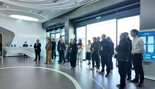 在广西细胞技术工程中心,调研组重点参观了中心的科普展厅,通过多媒体互动、XR体验以及动态数据展示等多元形式,系统且全面地了解了细胞技术的发展历程、核心科研成果以及临床应用案例。代表们认真聆听工作人员的讲解,不时驻足观察、交流探讨,详细了解细胞技术在医疗、健康等领域的创新应用,深刻感受科技创新为产业发展带来的巨大变革。
