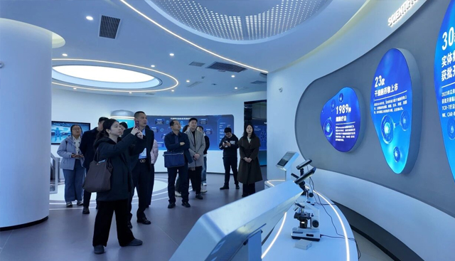 调研组实地参观了广西细胞技术工程中心科普展厅、广西综合细胞库、细胞制备实验室及细胞药物研发实验室,并与技术团队进行深入交流。孙建鹏总经理详细的汇报了干细胞技术研发与IIT进展,重点介绍了干细胞在神经内科脑卒中、帕金森、消化内科肝硬化、骨科膝关节退行性疾病、皮肤修复领域以及老年常见病防治领域的科研布局与IIT规划。作为广西“产、学、研”协同创新的重要平台,我中心聚焦细胞药物、外泌体技术等前沿技术,致力于为区内医疗机构与生物企业提供创新治疗策略研发支持,其完善的设施体系、严格的质量管控与清晰的转化路径获得了调研组的一致认可。