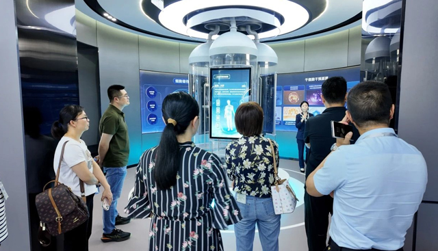 在广西细胞技术工程中心负责人蒋卫的陪同下,黄宇平副书记一行开启参观考察之旅。大家首先来到一楼展厅,通过图文、视频等资料,对细胞技术的前沿应用与发展前景有了初步了解。
